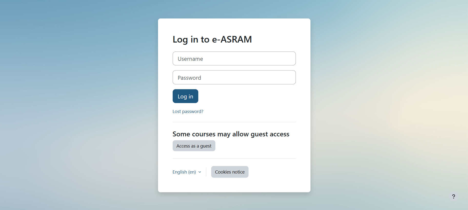 - Pada tampilan beranda LMS e-Asram, klik tombol Log In yang berada di pojok kanan atas.